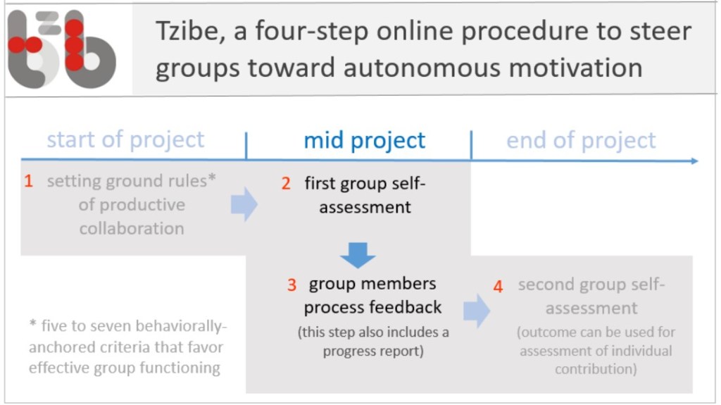 Here we describe an online application we developed to assess group member engagement: this is part of the group self-assessment protocol. The goal is for group members to experience a high degree of autonomy. We assume that this contributes to constructive group dynamics.